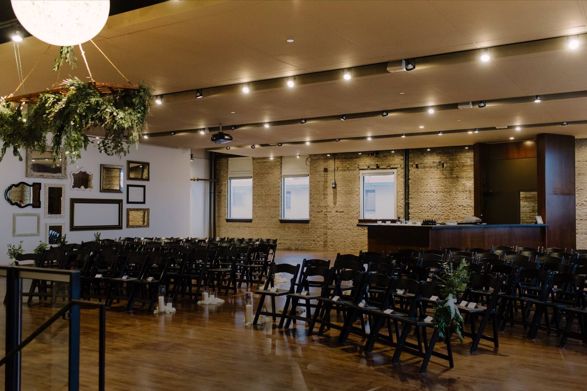 This is where the magic happens. The upper level is where we host our ceremonies, and receptions. This space features brick walls, hardwood floors, a built-in bar, three single-stall bathrooms, multiple ceremony locations, and offers many different room layouts to accommodate your needs best. The upper level also features dimmable lights to ensure top-notch ambiance for your event, and good natural light.